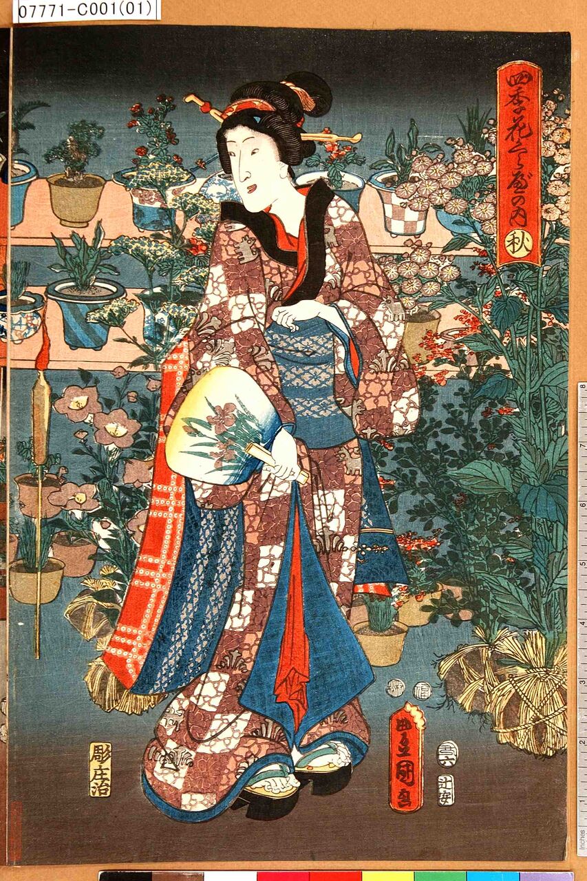 風俗を描いた浮世絵にも植木植物はたびたび登場していて、その華やかさを今にも伝えています。