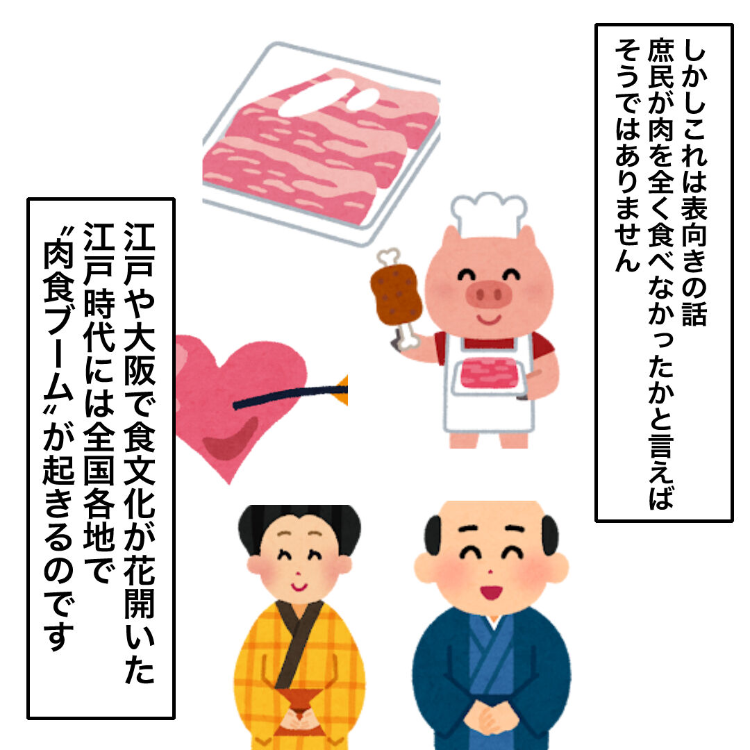 江戸や大阪で庶民の食文化が花開けば各地で実は肉食ブームがおきます。お肉、美味しいですからね。